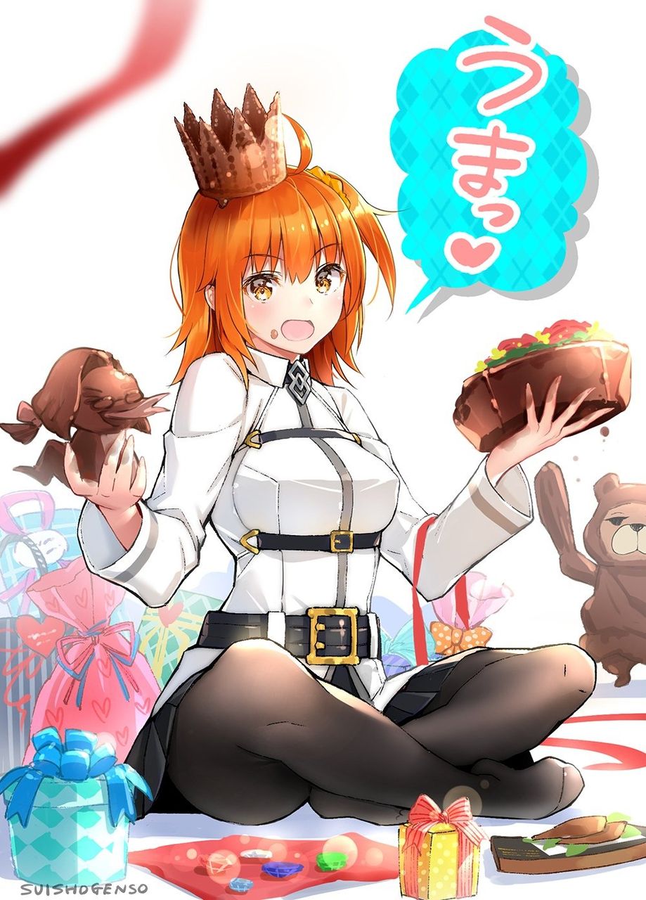 @we_genn へびチョコやクラウンセイバーなど沢山のプレゼントに囲まれて幸せそうなぐだ子かわいい😚💕