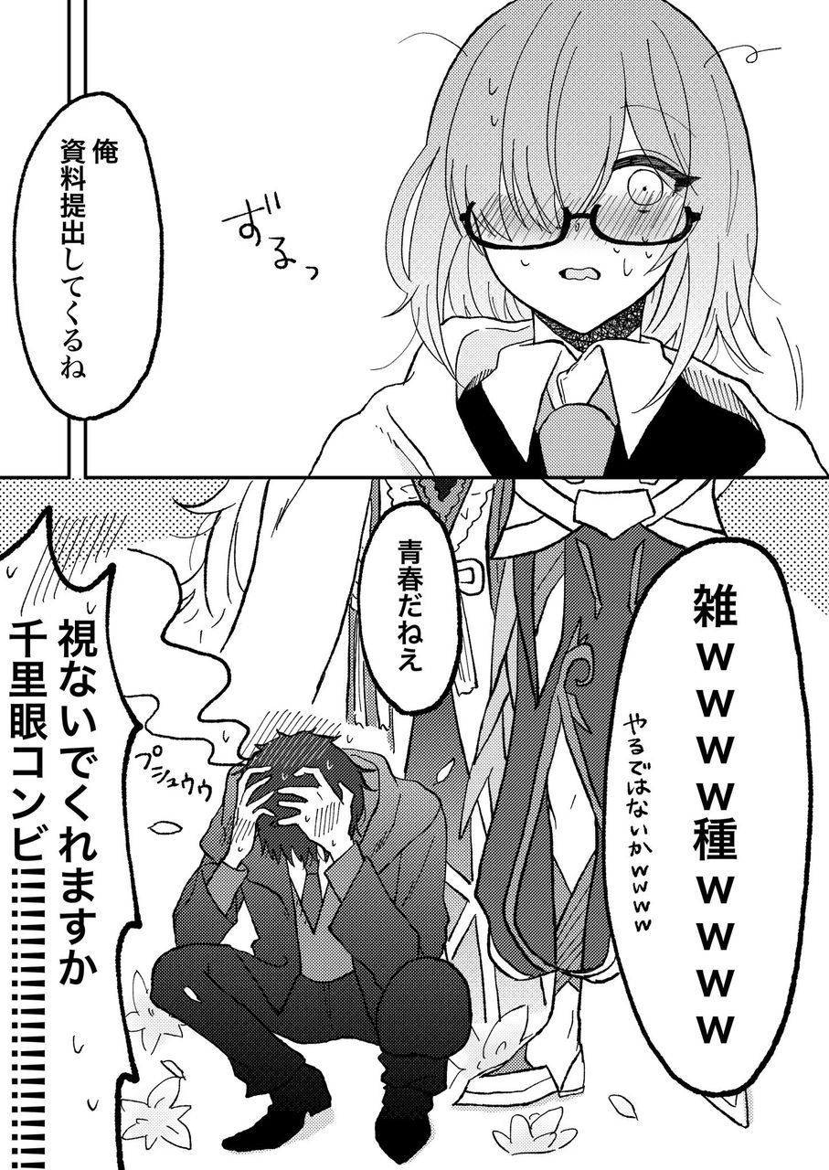 @mo_zawa ぐだ君かっこよすぎませんか?!!マシュちゃんも可愛いですし、2枚だけでも有難いのに3枚目の千里眼コンビにもう、言葉にならないくらい好きです!!
