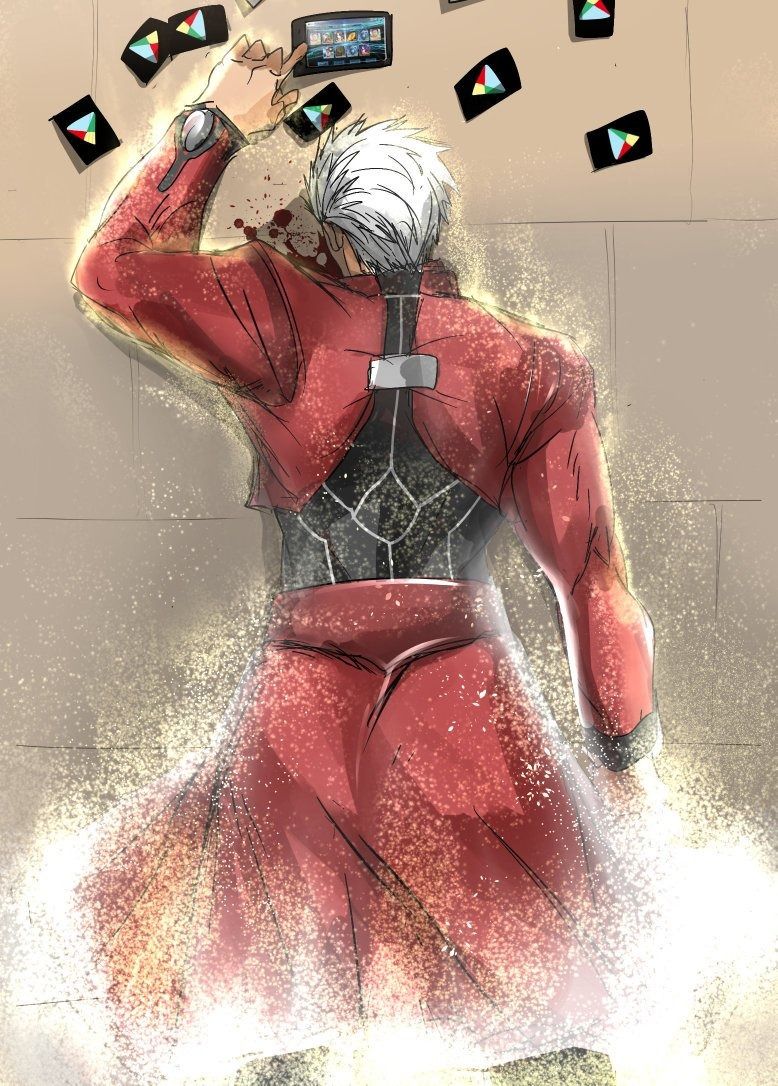 @g8df28385a5e4 @kawa_sandaime 消えるなッ!エミヤ!お前は…引くと誓ったんだろう!根底にあるのは願いだったんだろう!?だから…起きろぉーーー!!あとコレ見たあとウチのエミヤが宝具6()になりました!ありがとうございます!!