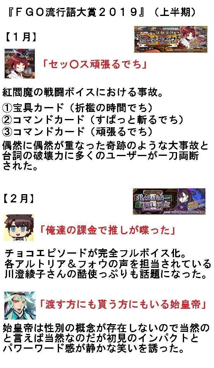 FGO流行語大賞2019上半期。