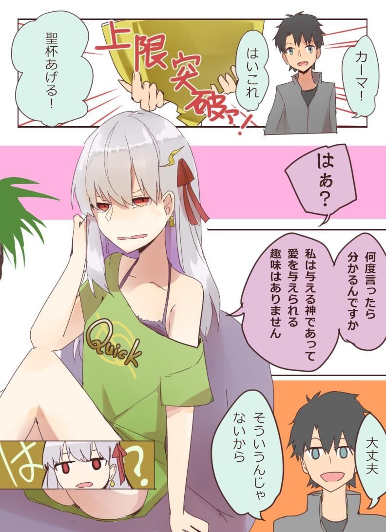 北郎@カルピス同好会@e__mishiカーマに聖杯をあげたい漫画です(QPがなくてむしゃくしゃして描きました) https://t.co/fVaK618dru
