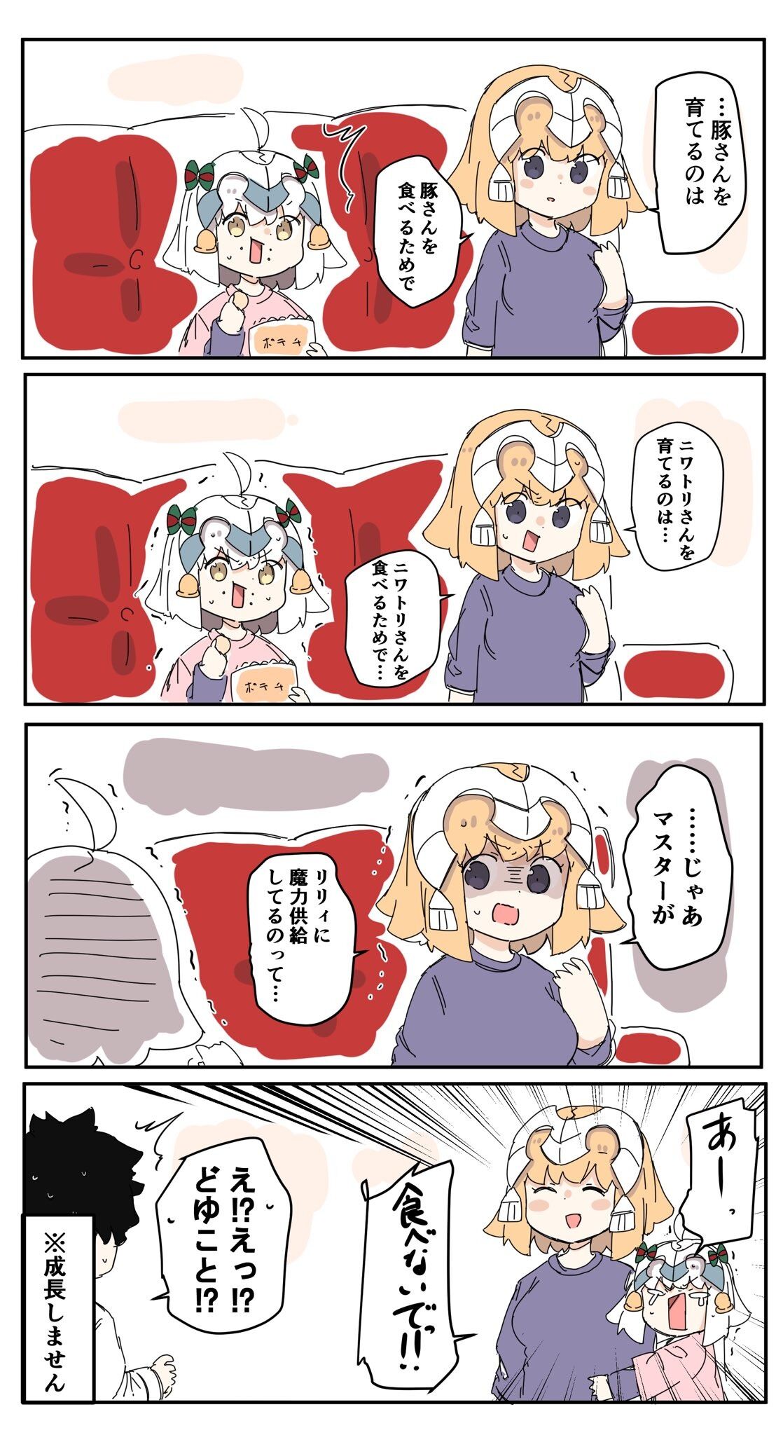 @ranfptn ポテチ食べながら焦るリリィが可愛くて尊いのと、リリィや邪ンヌを怖がらせるのが得意なジャンヌもかなり尊いっす。