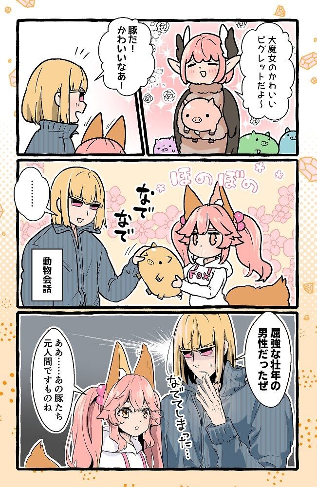 タマモちゃんのテンションが低いのは食べられない豚に興味がないからですね…。