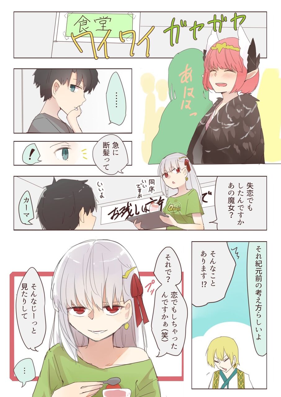 @e__mishi 初手から北郎さんの描くキルケーが凄く可愛くて素敵で、乙女なカーマちゃんの照れ顔とかほんと最高で、相変わらずマシュがやべー子なのほんと好きです、バソをネタにできなくなるぐだ個人的にツボです