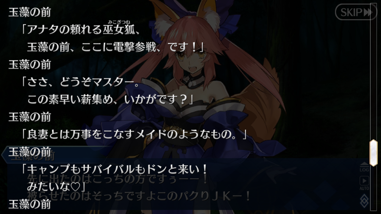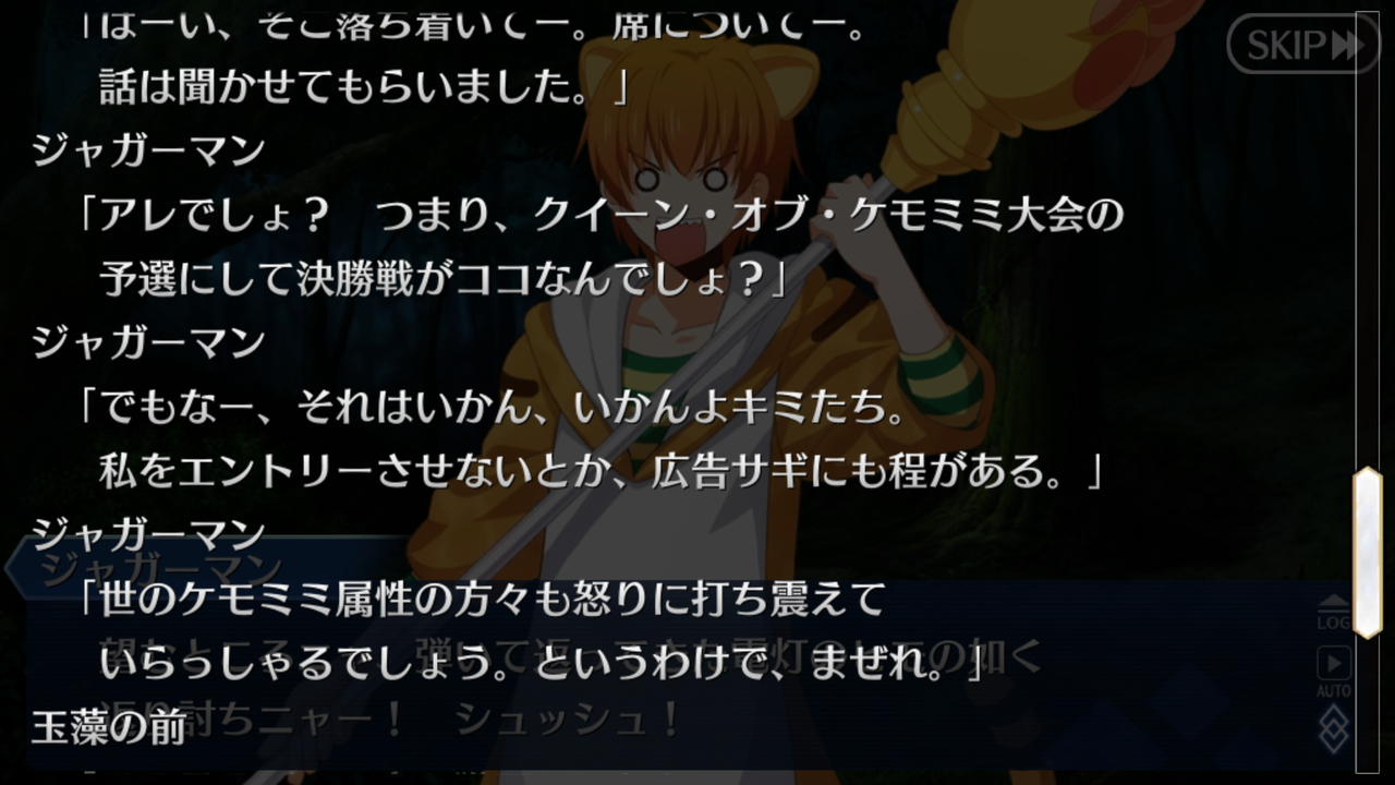 ジャガーとか玉藻の会話の仕方がきのこじゃね?って思うくらい凄いノリノリで会話してたよな