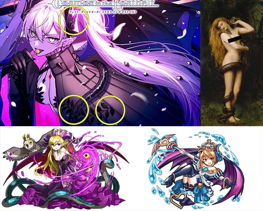 「蛇」「角」「耳」などの特徴から、手前のサーヴァントは旧約聖書に登場する原初の悪魔 &vquot;リリス&vquot; ではないかと妄想。