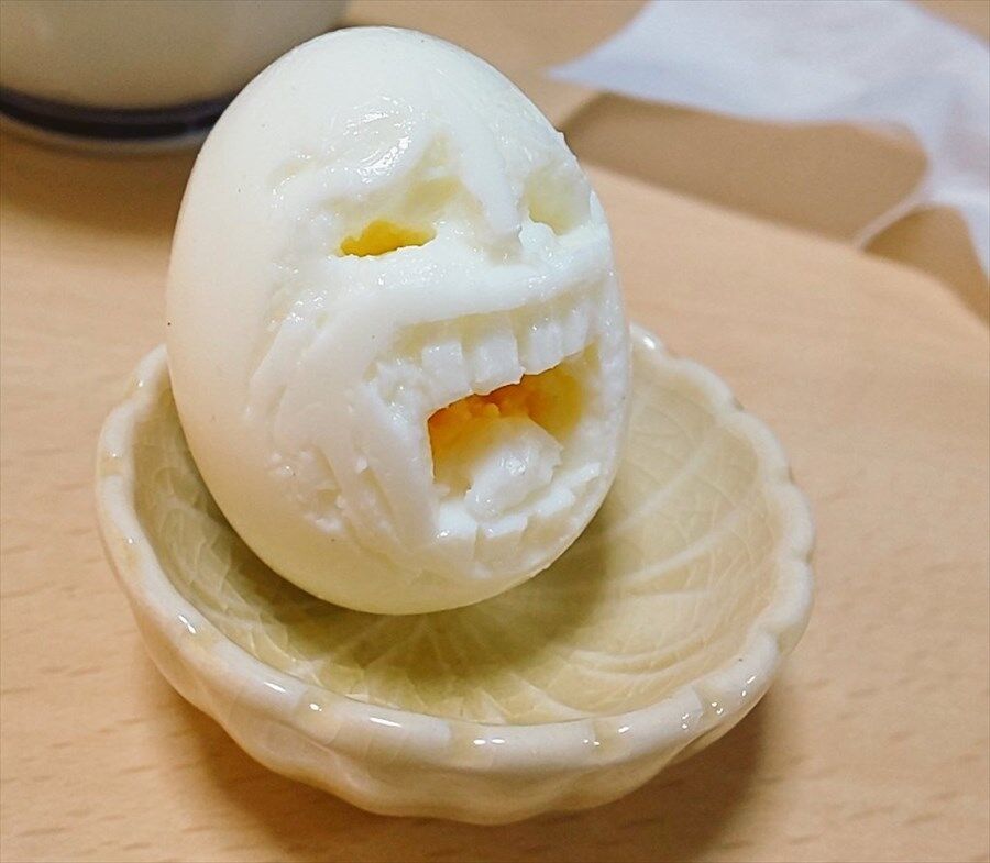 レジライもといコロンブスの卵彫ってみました(3枚目は醤油ぶっかけver.)