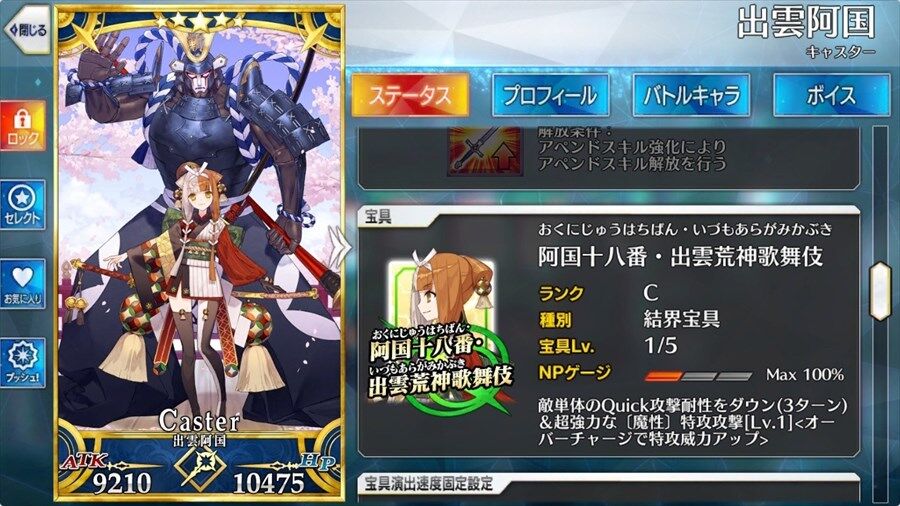 出雲阿国はキャスター初の単体クイック!!