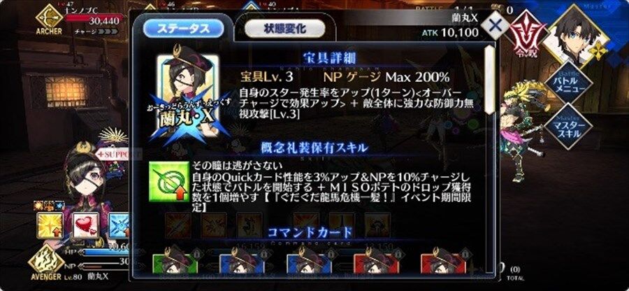 カーマやセイバーアストルフォでおなじみ宝具前Qバフ3Tかつ魔性特攻なので刺さる場面ではトコトン強い系サーヴァントですね。