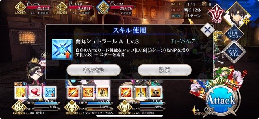 ★バスターが1枚しかない→カードが多いサポとアルトリアをオダチェン