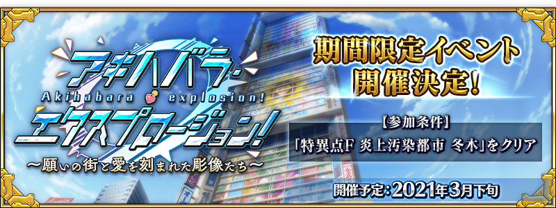 【FGO】新イベント『アキハバラエクスプロージョン』開催予定!! 塔イベっぽいな 2021年03月15日 カテゴリ:イベント 593: カルデア職員 2021/03/15(月) 18:01:51 これ塔イベっぽい? 595: カルデア職員 2021/03/15(月) 18:02:11 より多くの鯖をって書き方からして塔型イベか 596: カルデア職員 2021/03/15(月) 18:02:15 謎のイベ予告来た! 597: カルデア職員 2021/03/15(月) 18:02:25 アキハバラ? 【>>省略された記事の続きを読む】