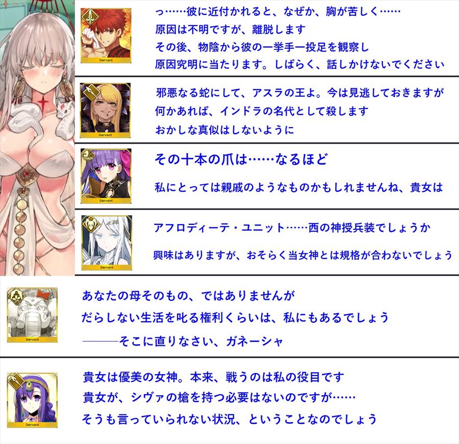 ドゥルガーの関係者へのマイルーム台詞まとめ。